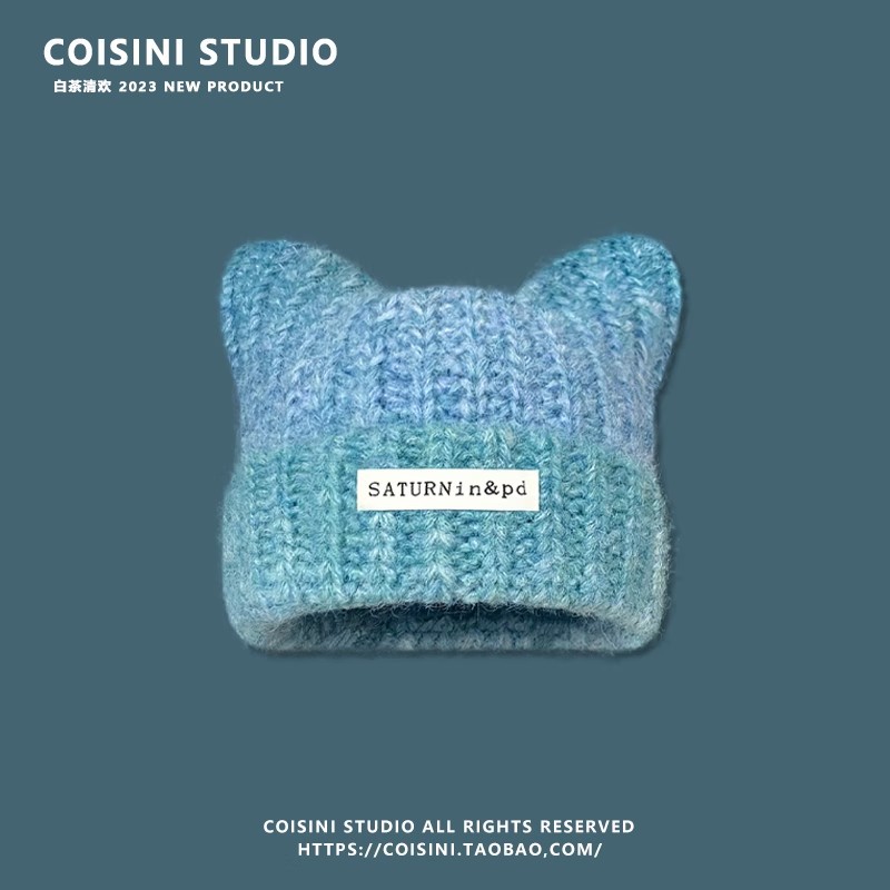 韓国版の新しいかわいい猫耳ぬいぐるみウール帽子、女性用、暖かい耳保護帽子、ショッピングニット防寒帽子、秋と冬に多用途