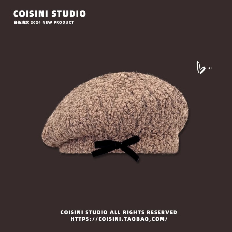 日本製リボンウール帽子女性用2024年秋冬新作甘い年齢軽減多用途ベレー帽顔見せ小さなペインターハット