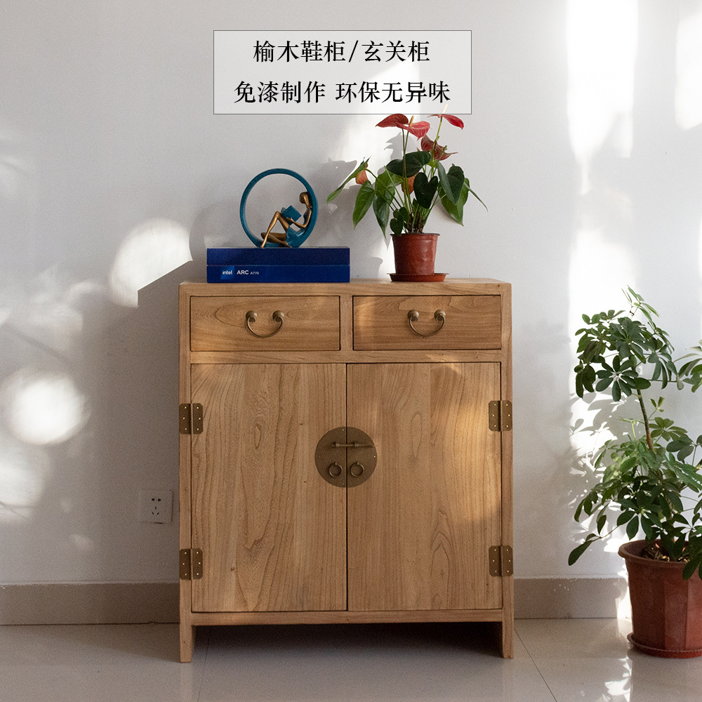 古いニレ無垢材の玄関装飾キャビネット、玄関キャビネット、玄関ドア、リビングルーム、サイドボード、靴キャビネット、収納キャビネット、テーブル