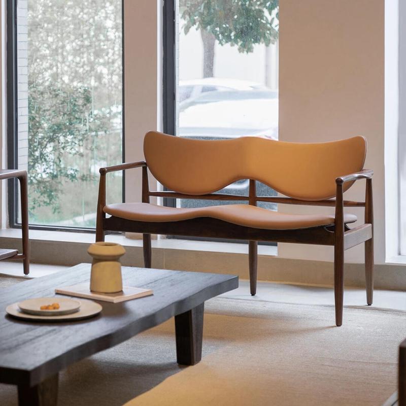 北米ブラックウォールナット新中国風レザーダブルラウンジチェア宋スタイル美的イタリア羅漢ベッドソファ禅家具