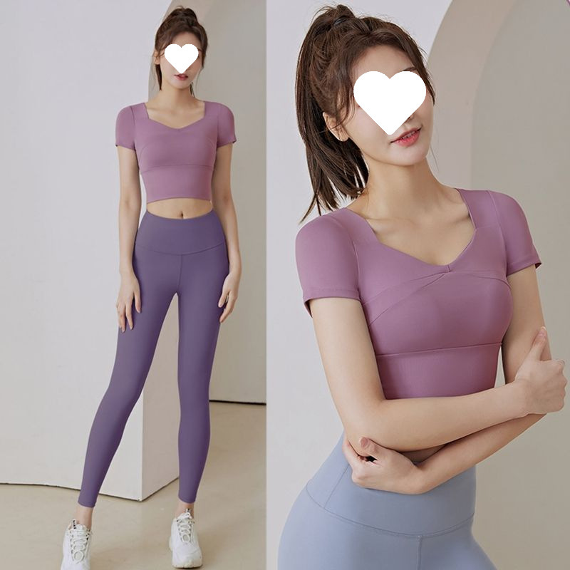 ヨガウェア女性夏 2025 新しいピラティストレーニング朝のランニングスポーツ半袖トップ胸パッドフィットネススーツ
