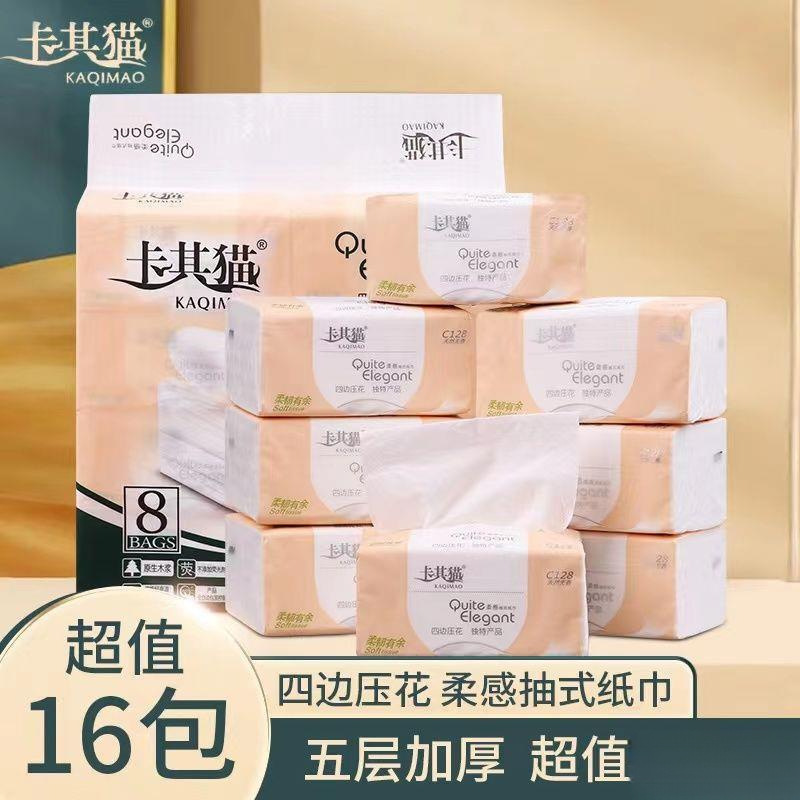 カーキ猫大型紙トイレタリーボックス卸売家庭用トイレットペーパー手頃な価格のハンドタオルウェットとドライのベビーフェイシャルティッシュ