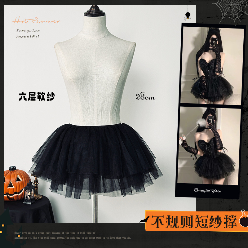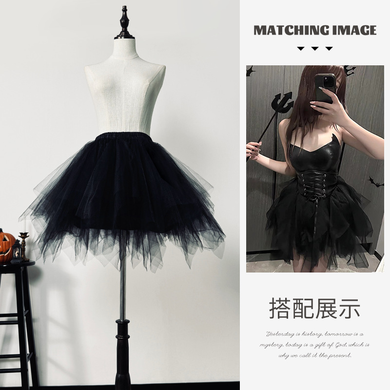 スカートはlolita 28cmの日常の不規則な6層の柔らかい糸の短いタイプのハロウィンの暗い天使の蓬のスカートを支えます。