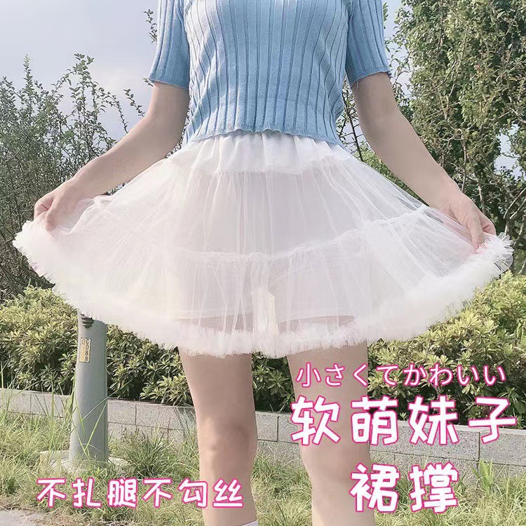 スカートはlolitaの日常のガボンの6層の柔らかい紗を支えてロリータの雲を支えて白色の短いタイプの暴力の百合のスカートを支えます。