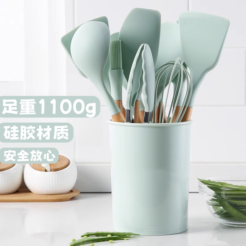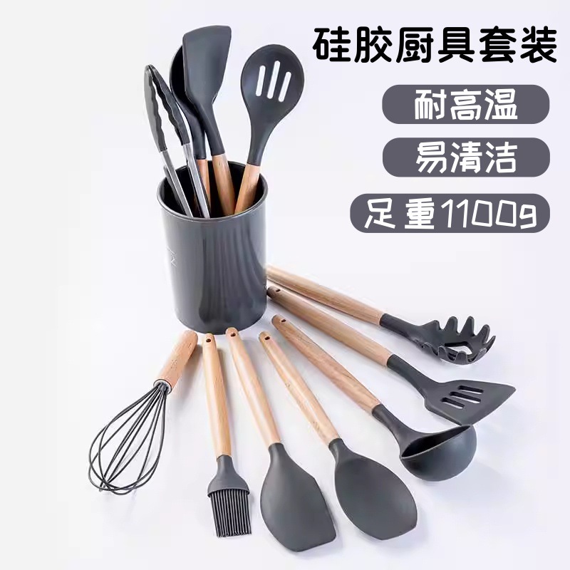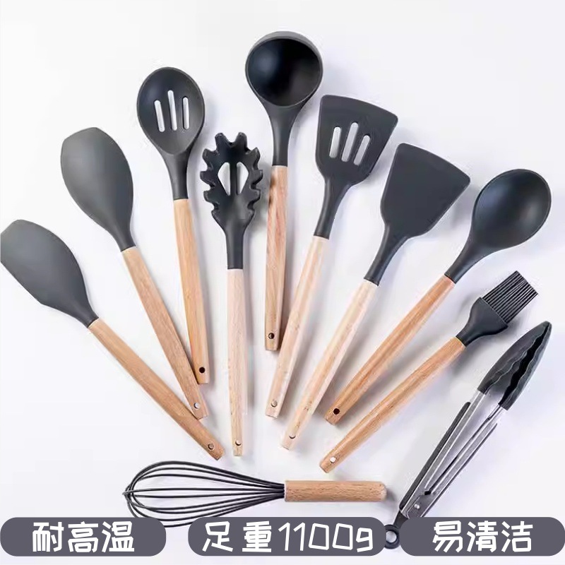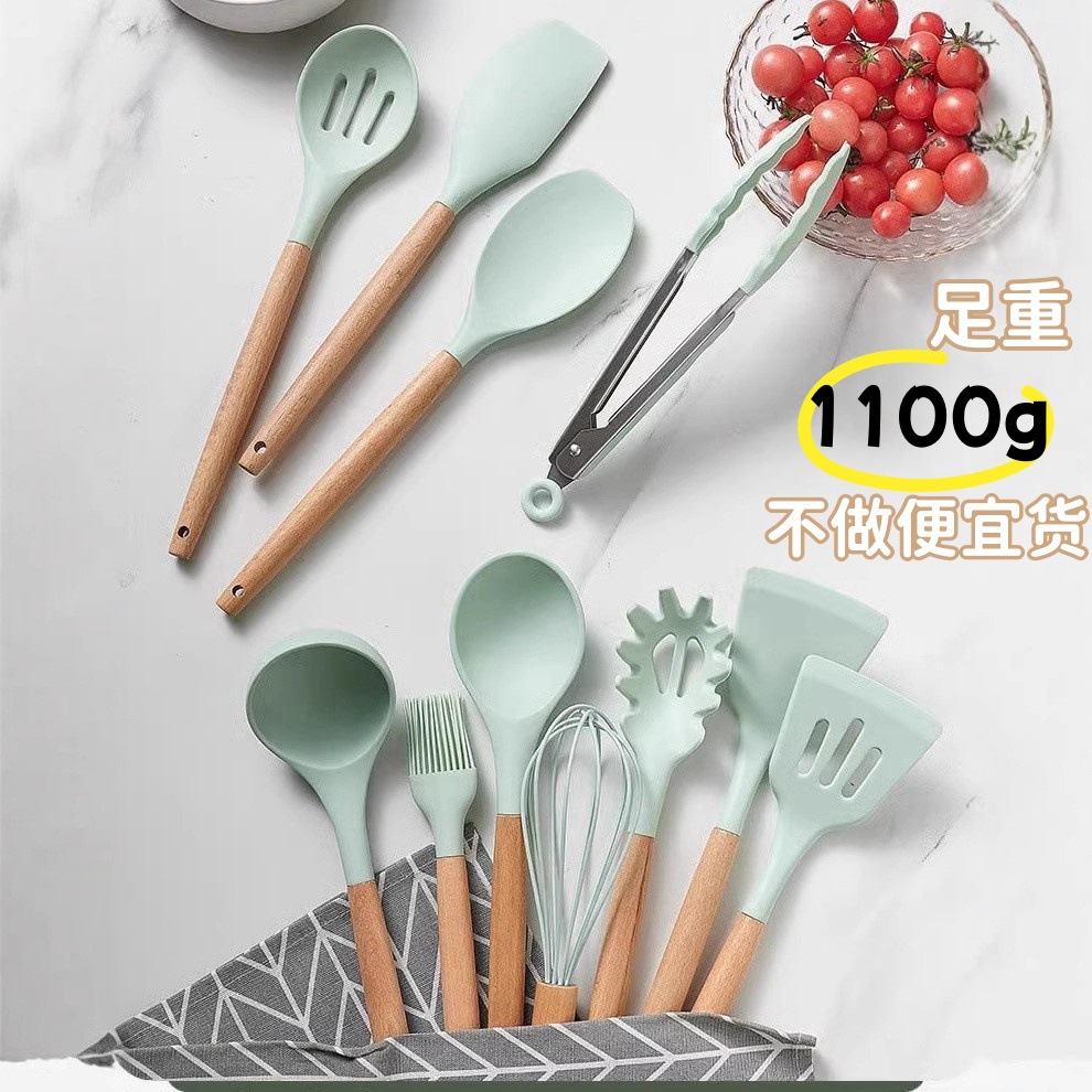 クロスボーダー木柄シリカゲル調理器具12点セット家庭用調理用鍋にくっつかないシャベルスプーン高温調理器具セット