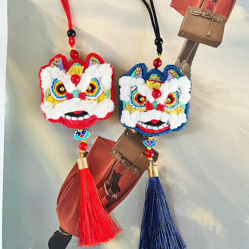 Diy手作業でライオンの頭を目覚めさせた平安記号車載ストラップ刺繍ストラップ材料は父の彼氏に誕生日プレゼントを贈る