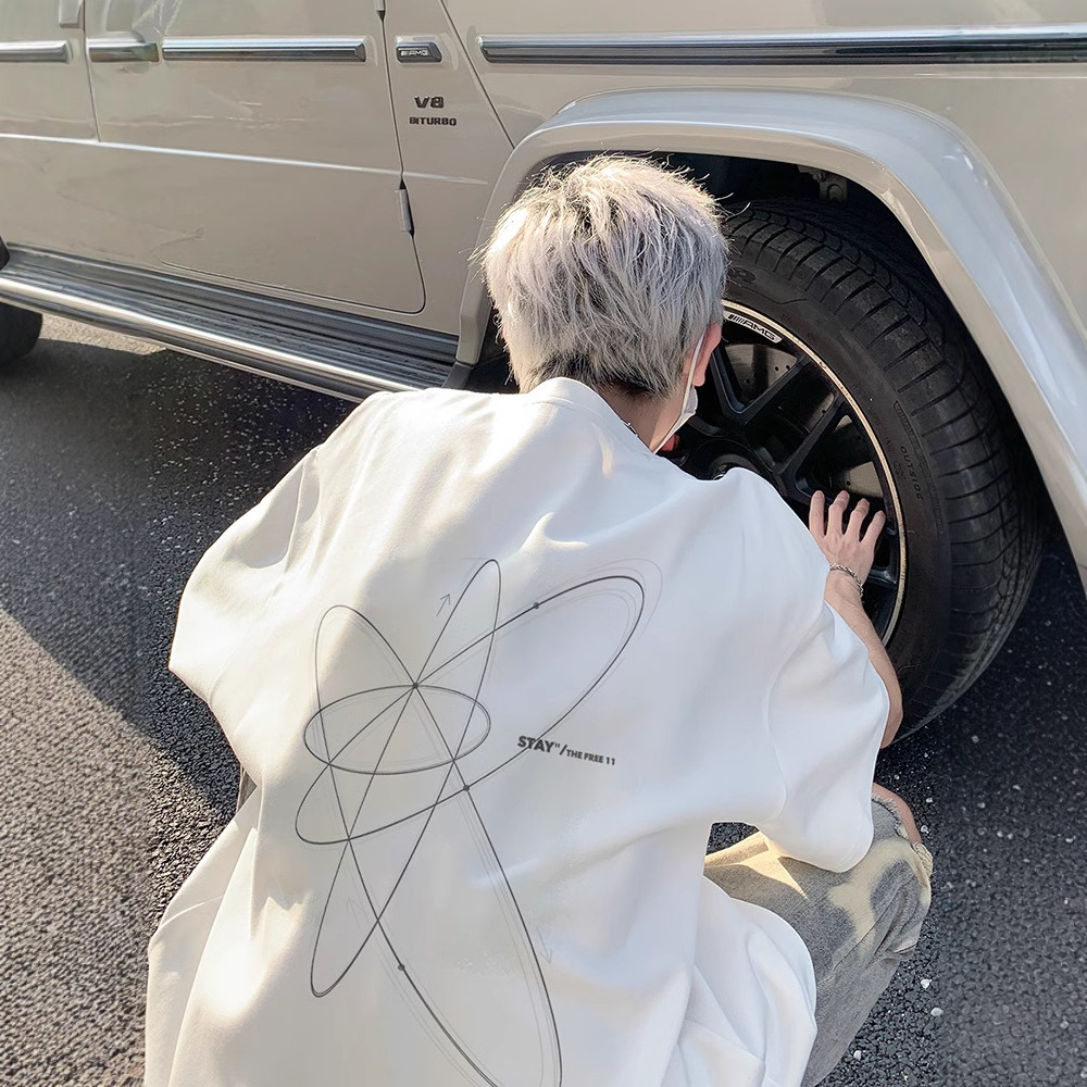 楕円曲線デザインニッチピュアコットンヘビーウェイト半袖Tシャツメンズ夏デザインニッチアメリカントップス