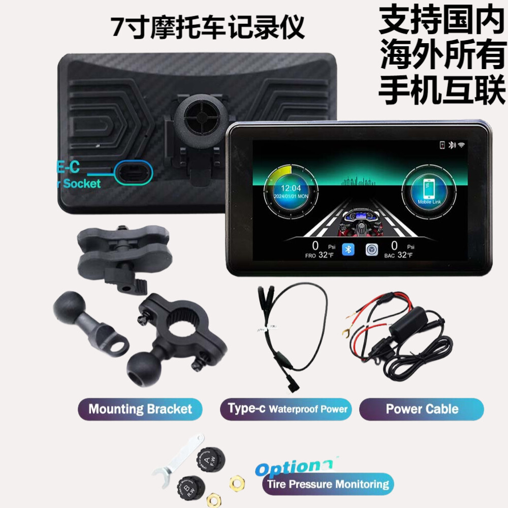 クロスボーダー専売7インチオートバイ機関車ドライブレコーダー無線carplay前後高精細ダブル記録