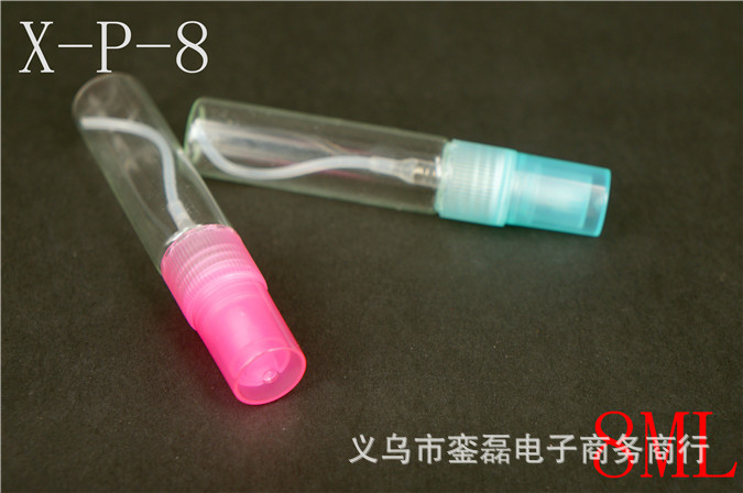 人気 -- 7mlスプレー香水サンプル試作品ガラス試験管と4色プラスチックノズルがセットされています