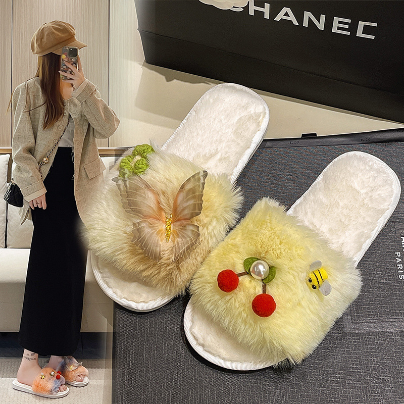 越境冬の新型の蝶のぬいぐるみのスリッパの家の室内外の保温の交差する綿のスリッパの毛は卸売りを引きずっています。