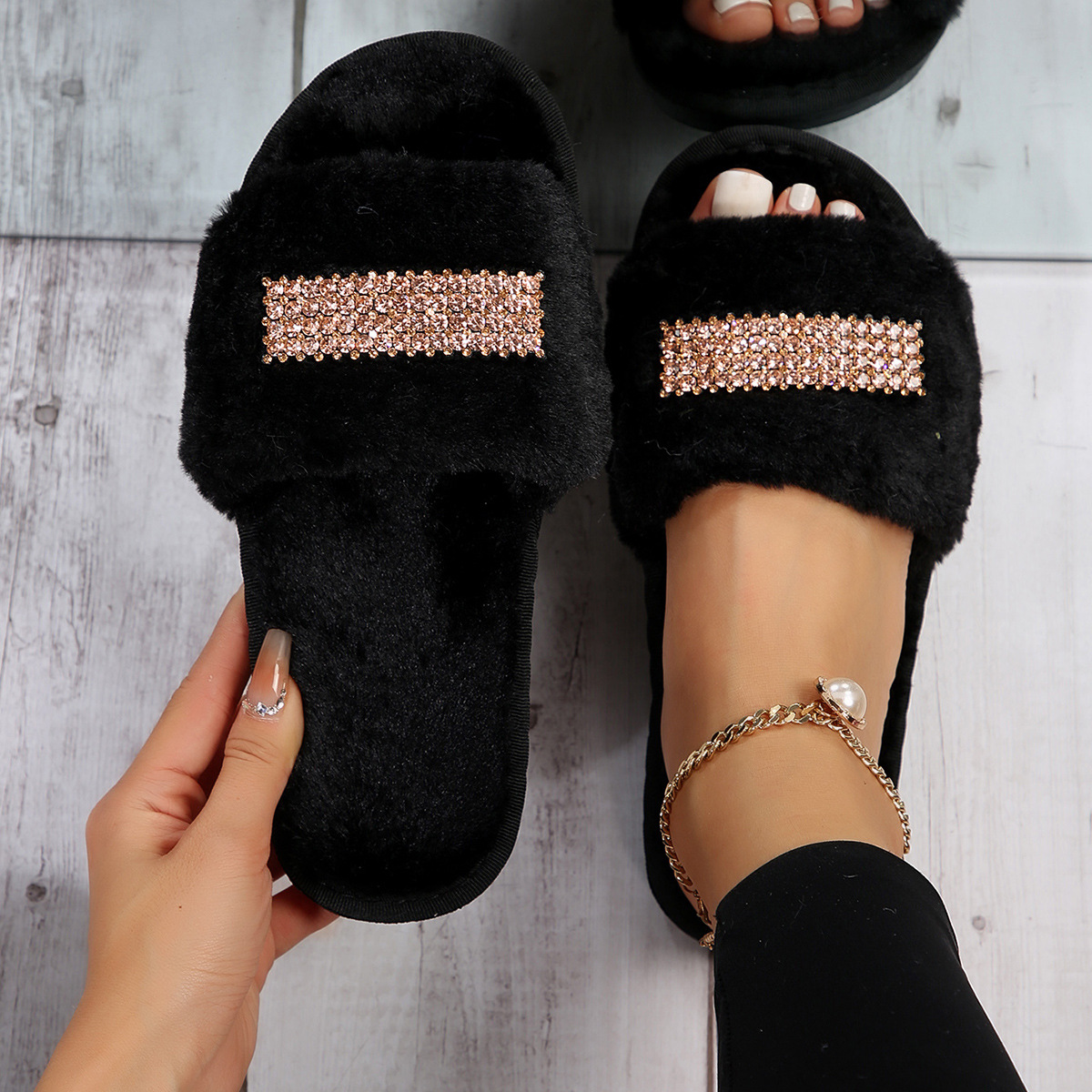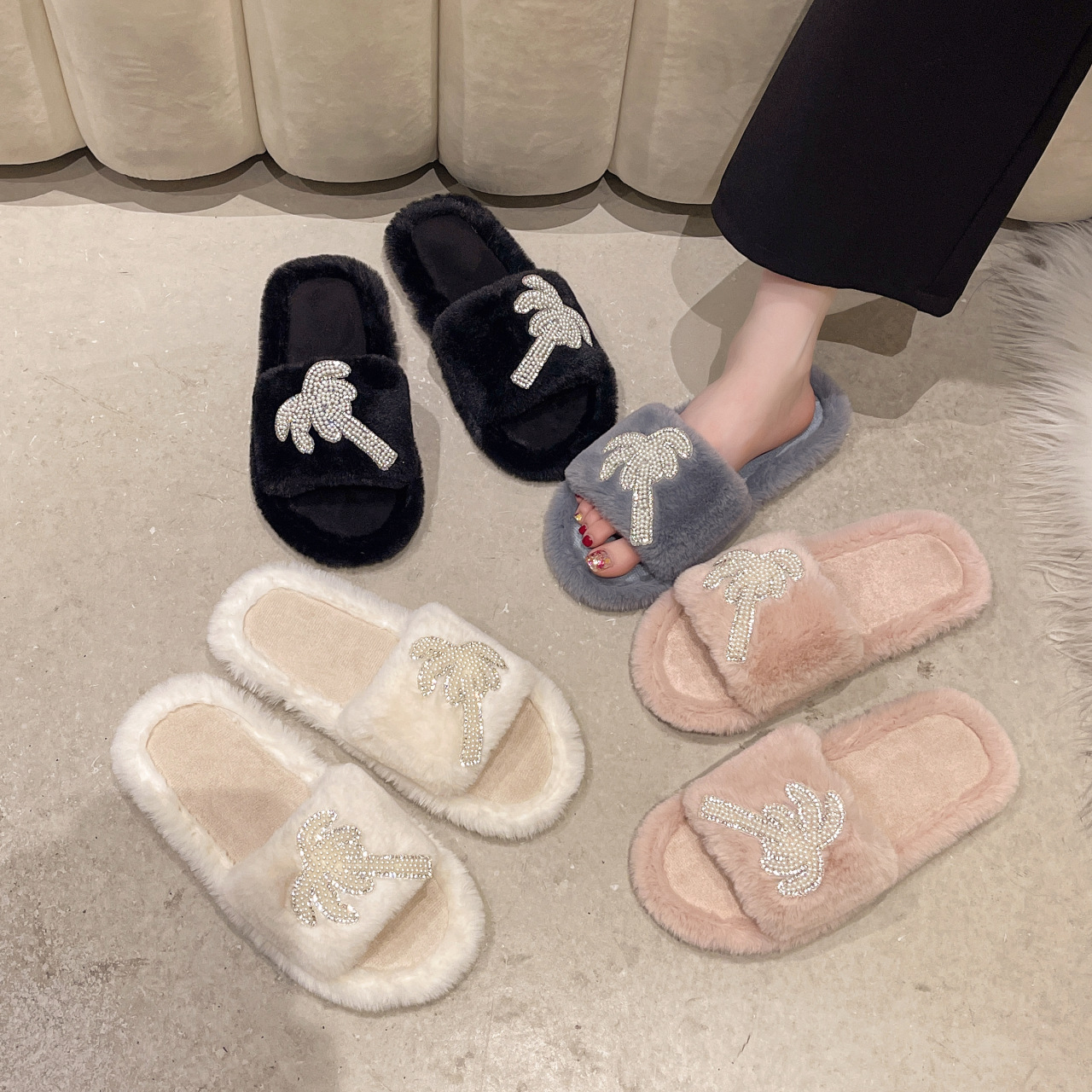 クロスボーダーの毛のスリッパの女性の新型の秋冬の新型の韓国版のファッションの金属のドリルの家の1字の綿のスリッパの卸売り