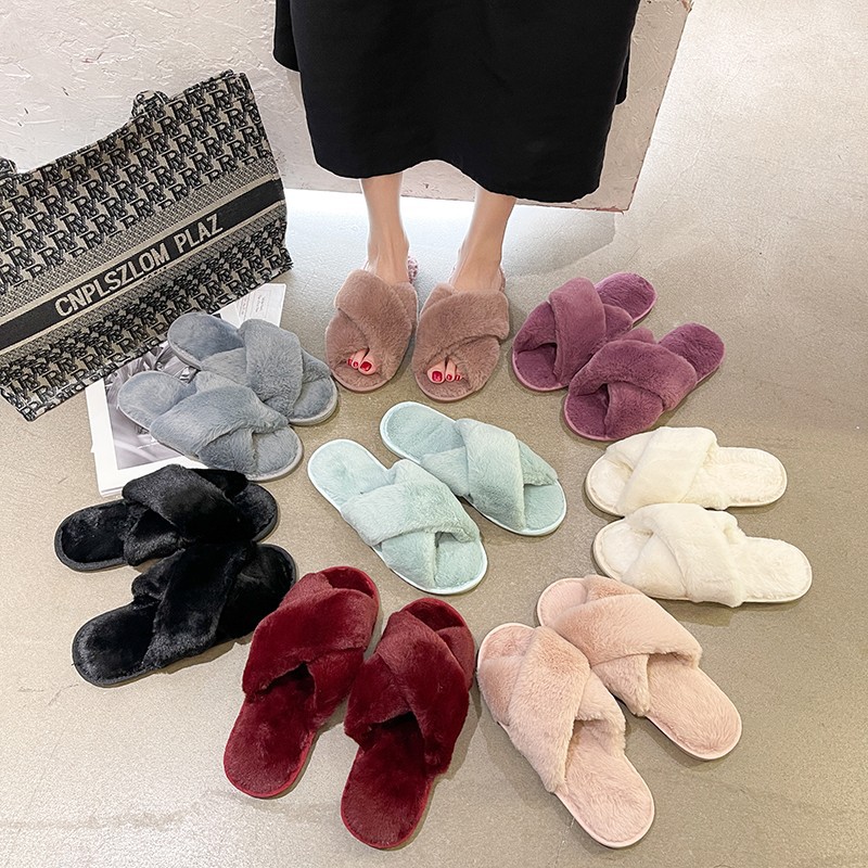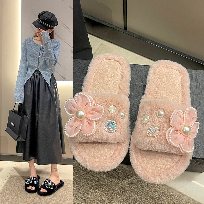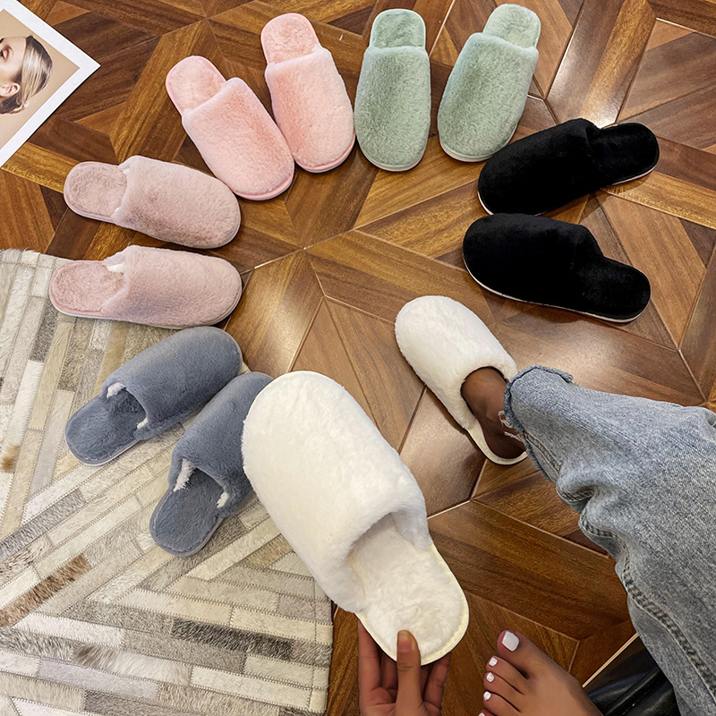 秋の新型女性韓国版ぬいぐるみ一字スリッパファッション純色保温軟底家庭花スリッパ対外貿易金
