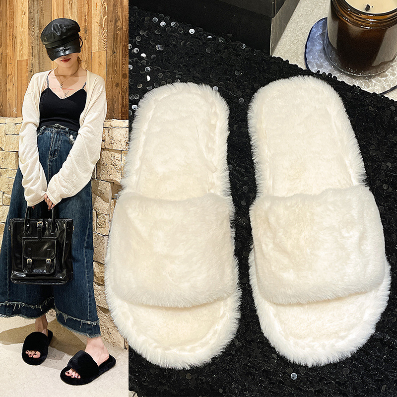 2023秋冬の毛のスリッパの女性の平底の家の対外貿易は足の毛のスリッパのファッションを挟みます。