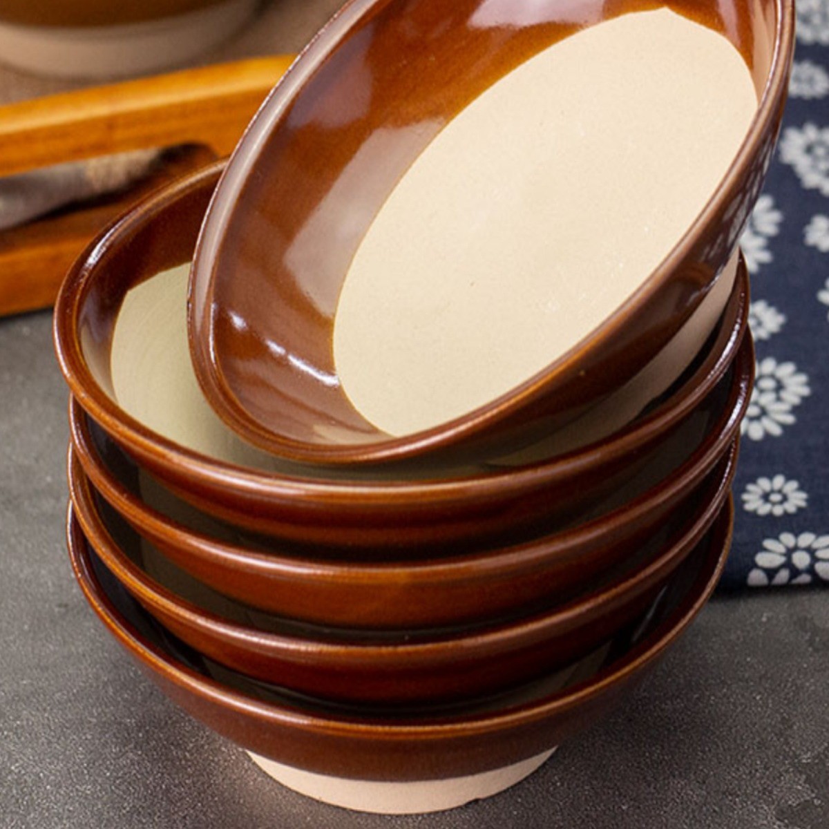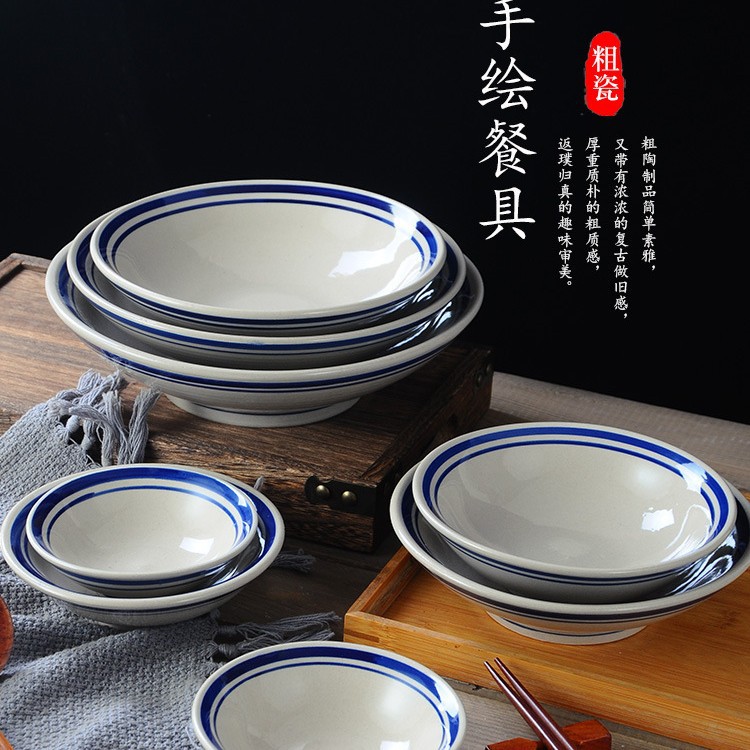レトロな二重線の陶磁器の碗の旧式な土碗の野菜の碗の業務用蒸し碗の小さい碗の鍋の調味料の碗の粗い陶器の碗のご飯の碗