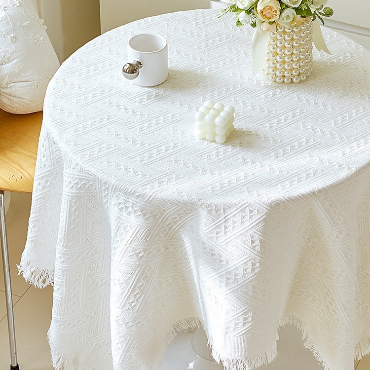 Ins風フランス式の小さい円卓の軽くて豪華な高級感のテーブルクロスの布芸の綿の麻の誕生日は白いテーブルクロスのお茶の布を撮影します。