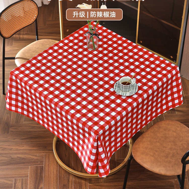 PVCテーブルクロス防水防油無洗新年雰囲気感ins赤いテーブルクロス茶卓布格子机