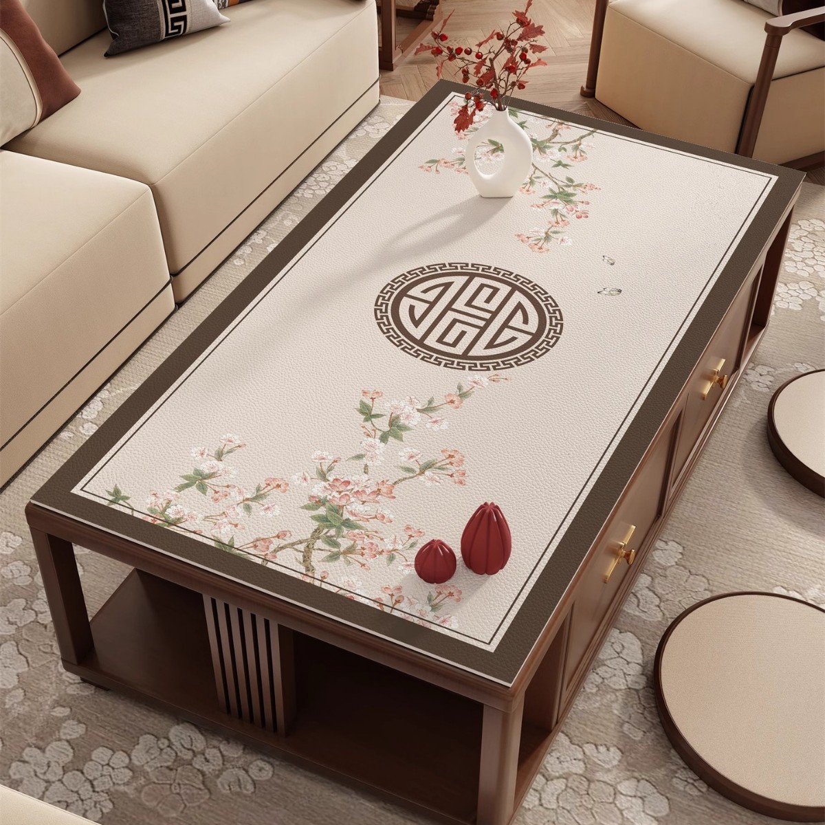 新中国式茶卓マット防水防油防熱無洗テーブルクロス軽贅沢高級感客間皮革テーブルマット