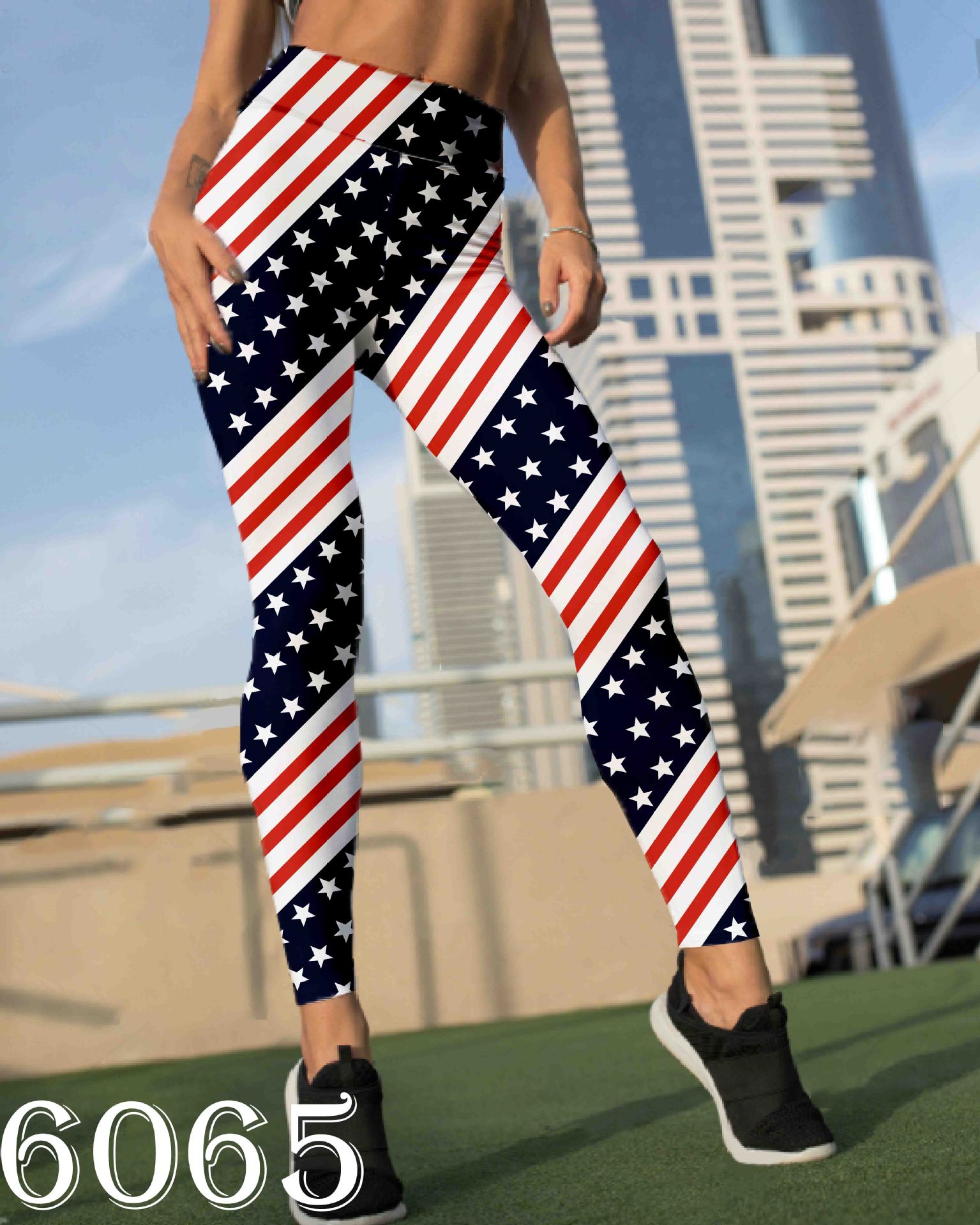 9247アメリカ国旗のデジタルプリントのレギンスのプリントの9分のズボンの祝日のレギンス