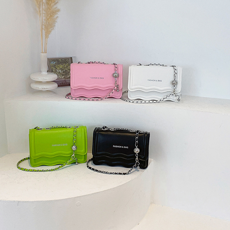 波の紋様のファッションの質感はシンプルで純色のチェーン2023夏の新型のキャンディー色のシングル肩の斜め掛けの小さい方の包みの女性です。