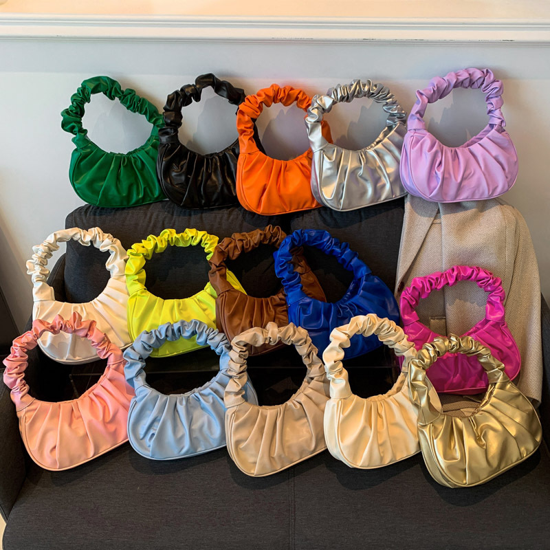 色の韓国版の新型のファッション的な純色のしわの雲の甘い肩掛けの街頭の潮流にぶつかって脇の下の女性のカバンを持ちます。