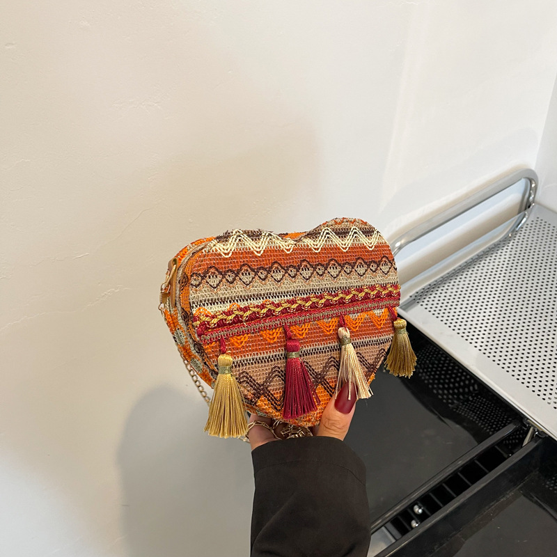 2022新型バッグ女性ファッション斜めショルダーバッグハート型流蘇民族風チェーン少女ショルダーバッグ