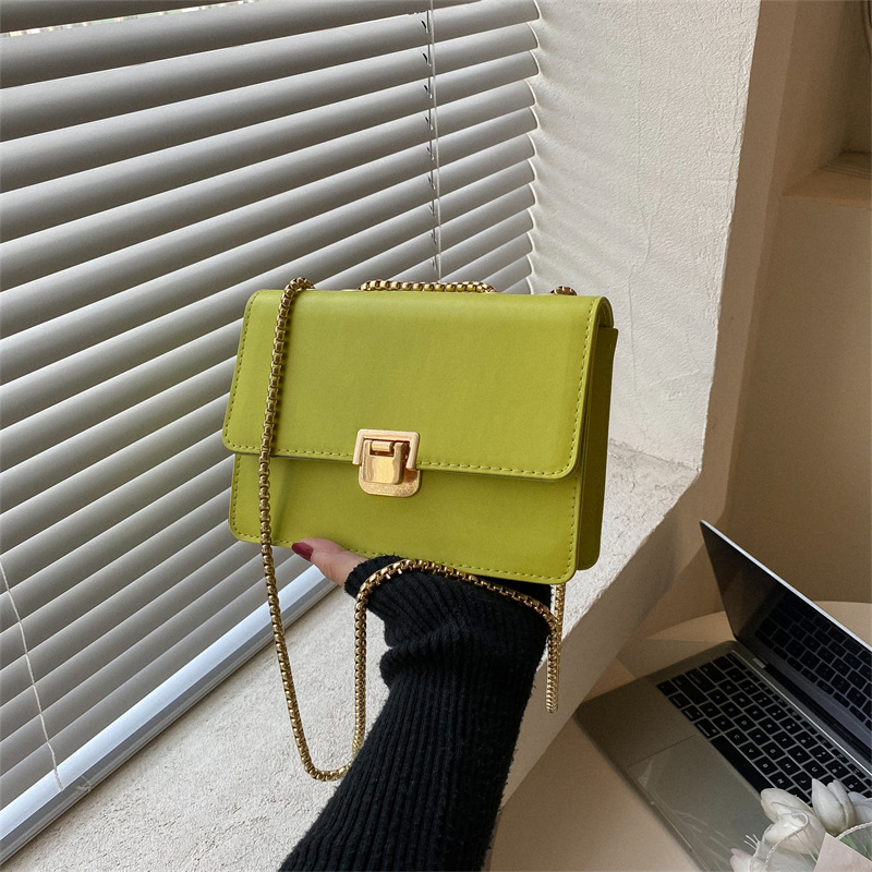 2022新型ファッション純色チェーンバッグ質感カジュアル脇下バッグ秋冬レトロ洋風ロックボタン小方バッグ