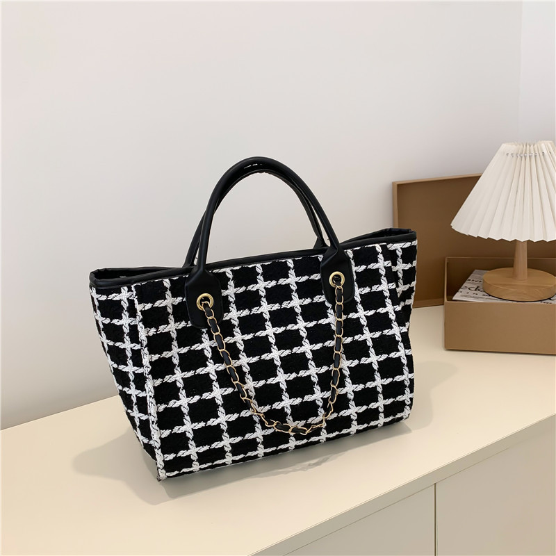 大容量バッグ女性2022秋の新型シングル肩脇下バッグシンプルな格子カジュアルなトート女性バッグ