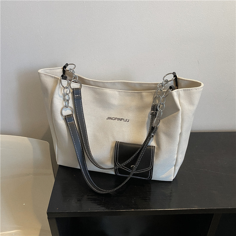 キャンバスバッグ女性大容量2022新作早秋カジュアルショルダーバッグ質感洋風授業通勤トートバッグ
