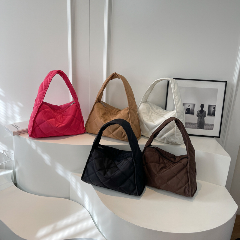 2023新型菱格刺繍糸純色冬カジュアル軽便大容量シングル肩脇下手提げ小方包女