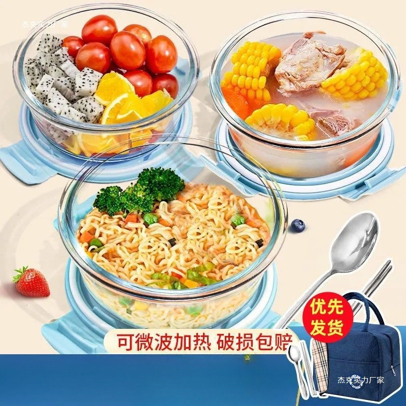 ガラス弁当箱 高ホウケイ酸耐熱丸ボウル 高温耐性 オフィスワーカー弁当箱 蓋付き フルーツ弁当箱