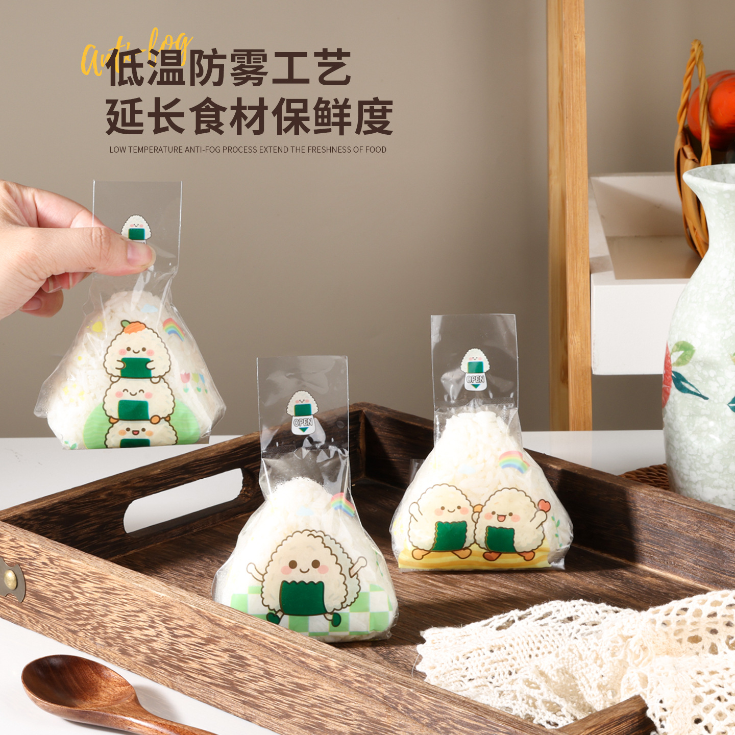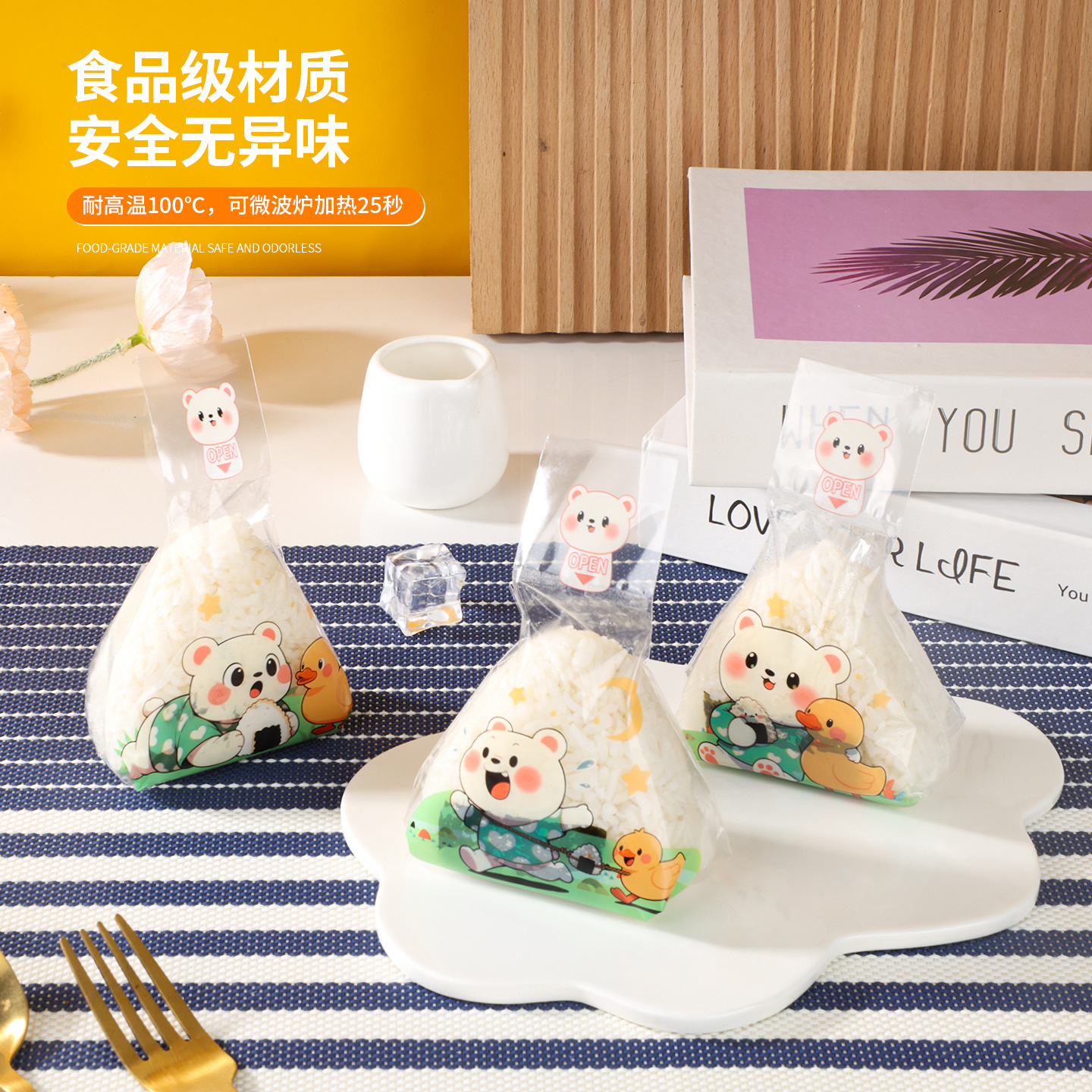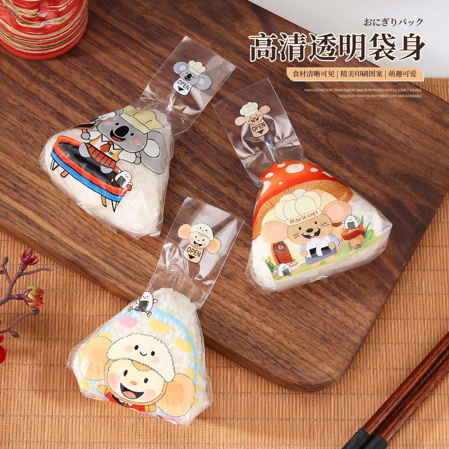 防霧耐高温食品級三角おにぎり袋かわいいおにぎり包装袋屋台寿司専用加熱可能