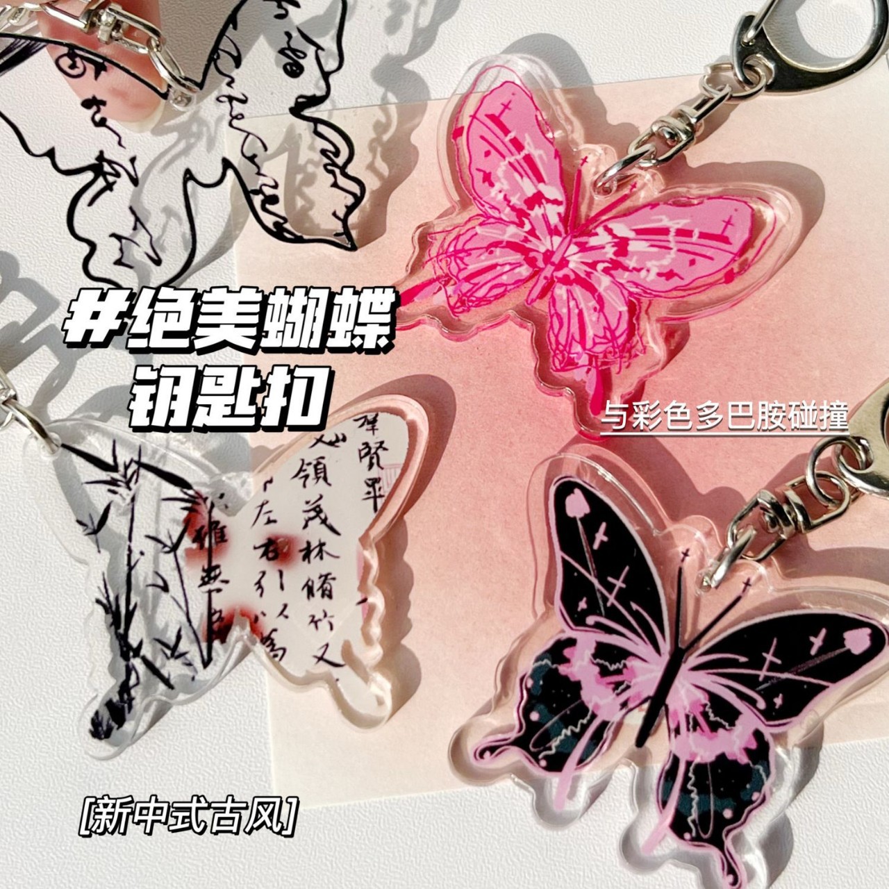 新中国式古風蝶キーホルダー絶美ストラップ小衆ins少女心かばん掛けクリエイティブプレゼント潮