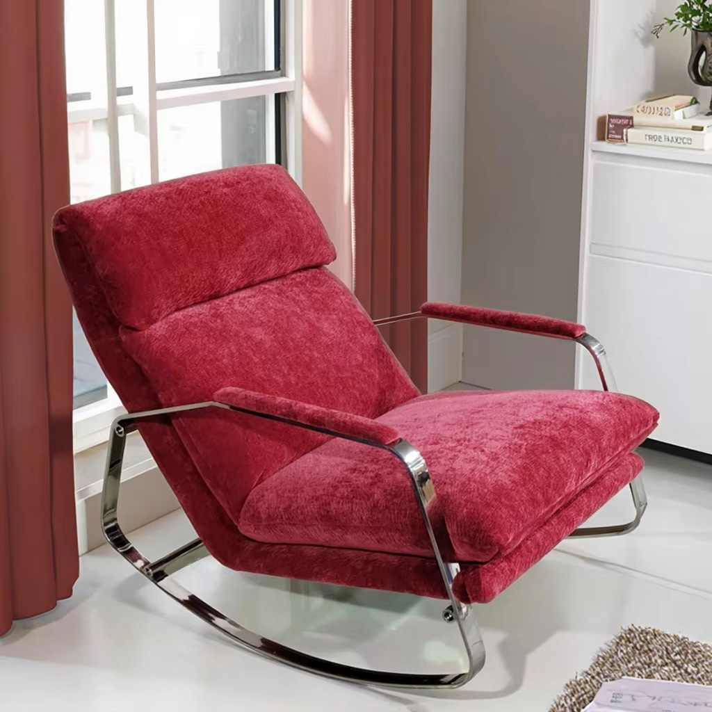 モダンでシンプルなロッキングチェアステンレス鋼フレームダウンファブリックデザイナーリクライニングチェアリビングルームスタディバルコニーソファチェア
