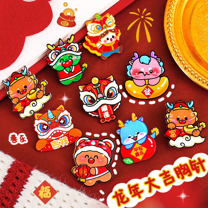 龍年ブローチ子供漫画バッジアクリルアクセサリー新年プレゼント装飾小学生賞品バッジプレゼント