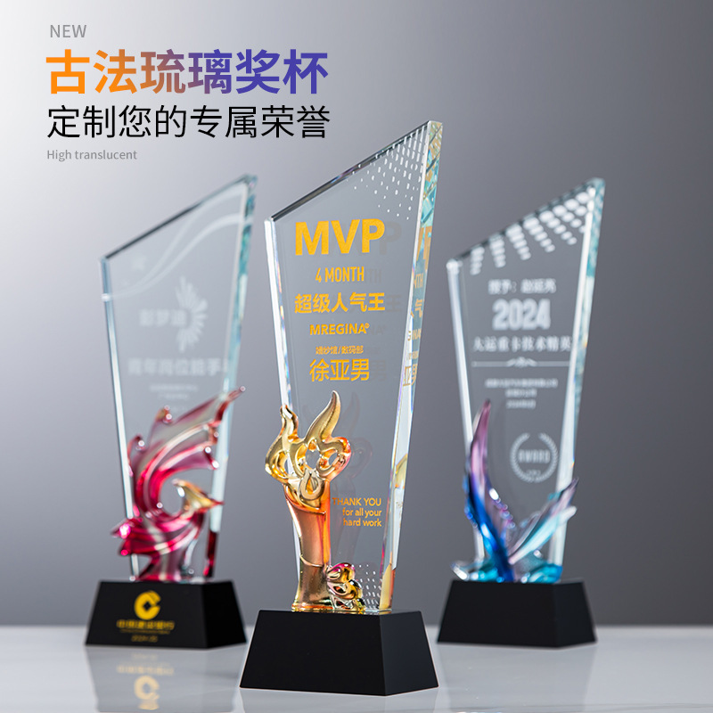 新型古法瑠璃水晶トロフィー会社年次総会授賞保険メダル会社優秀社員記念品