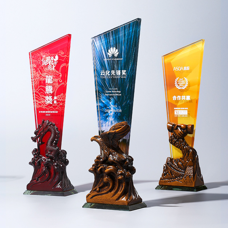 新型金属水晶トロフィー創意競技優勝実木メダル彫刻年次総会優秀社員授賞記念