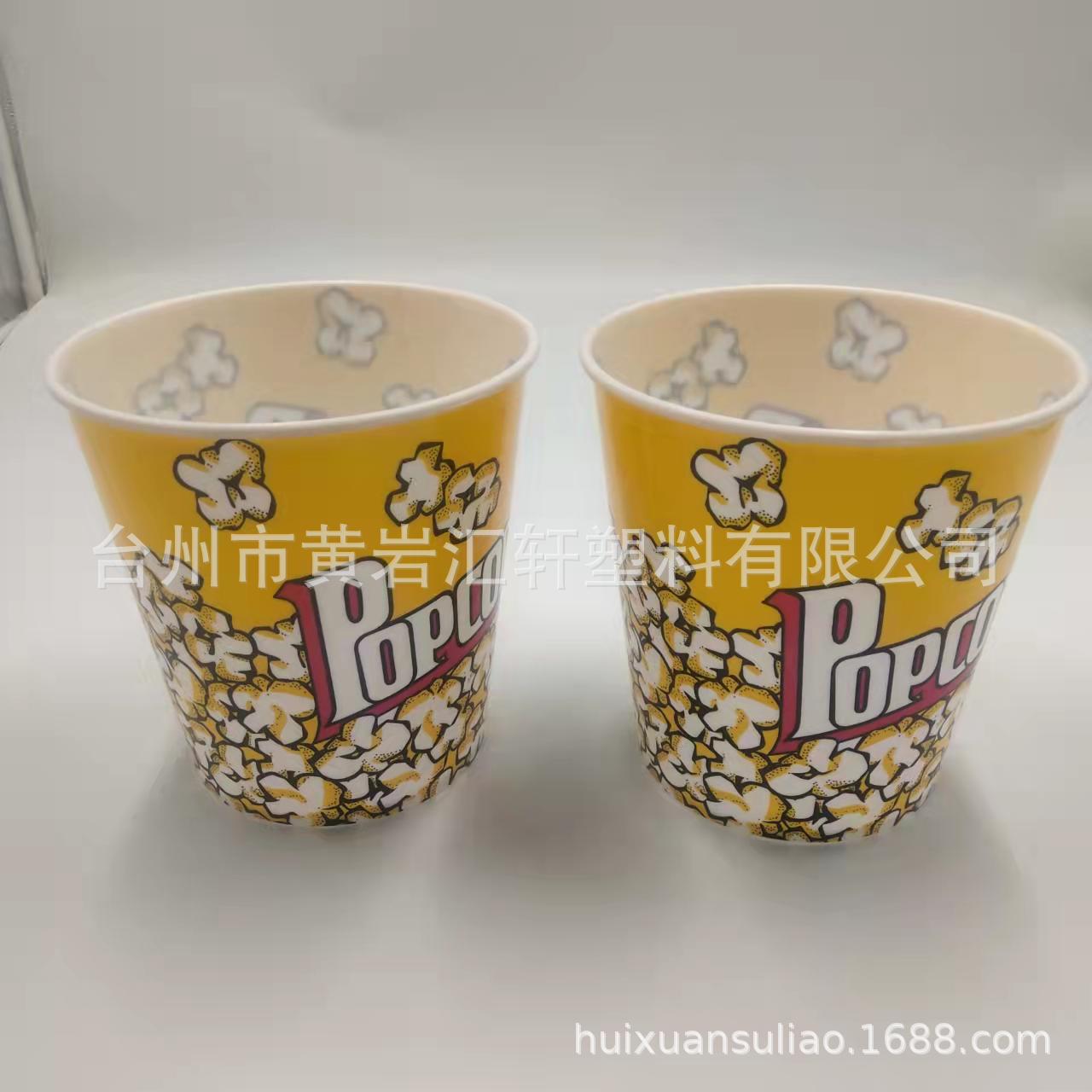 メーカー卸売り円形ポップコーン缶PPプラスチック円形ポップコーンカップ膜内貼りロゴ印刷