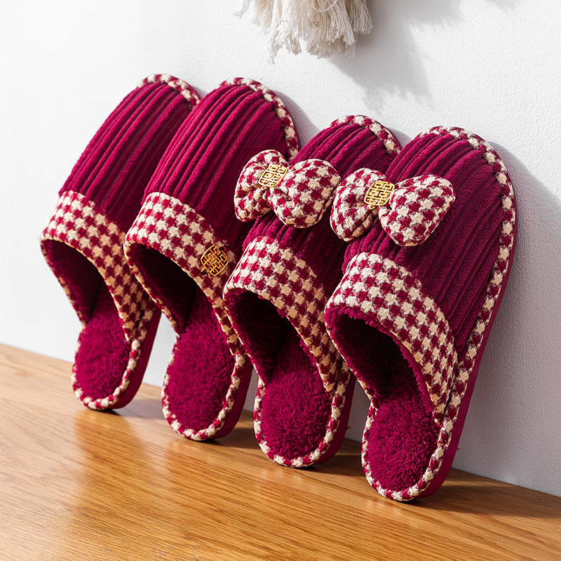 結婚スリッパの女性のお祝いの赤い綿のスリッパの結婚式の秋冬の家庭用結婚祝いのカップルの新婚