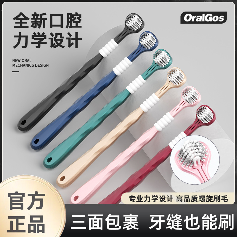 【C側起爆】高級軟毛三面歯ブラシ成人家庭用三頭全包清潔歯茎卸売り