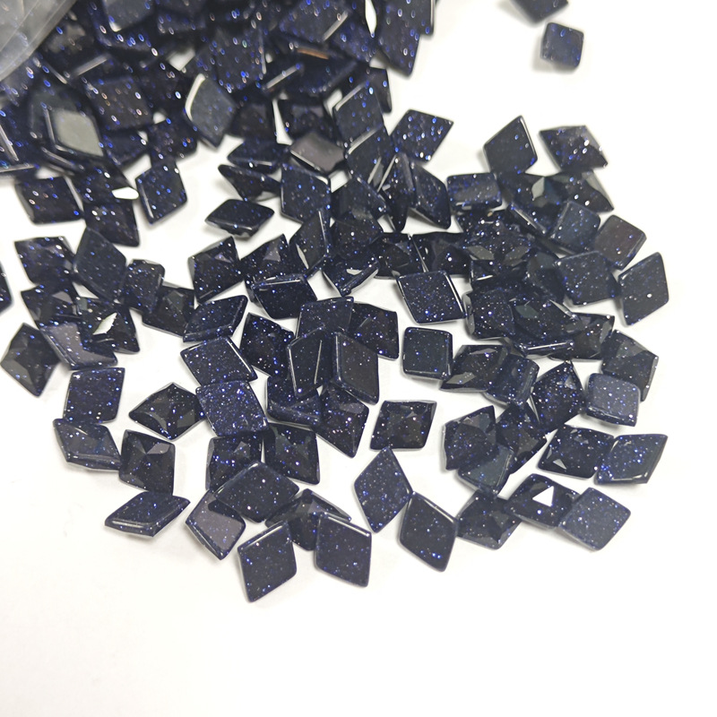 カスタマイズされたひし形の青い結晶の砂の水晶のガラスの裸の石のカスタマイズされた青い結晶の砂の円形の雑形の各種のサイズの形の卸売り