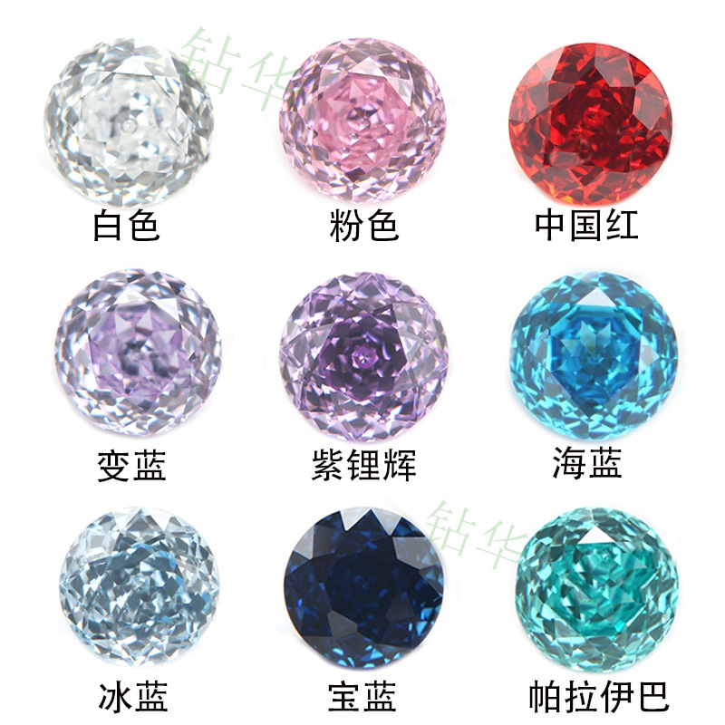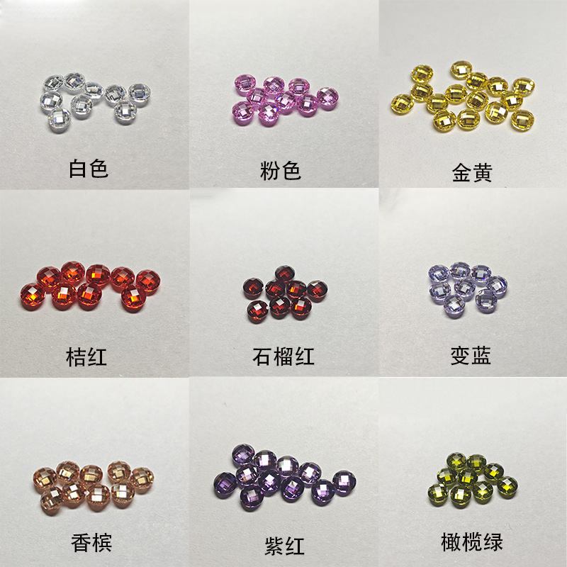 3a円形白色ジルコン裸石0.8-3mm八心八矢尖底白色小粒ドリル合成皓石卸売り