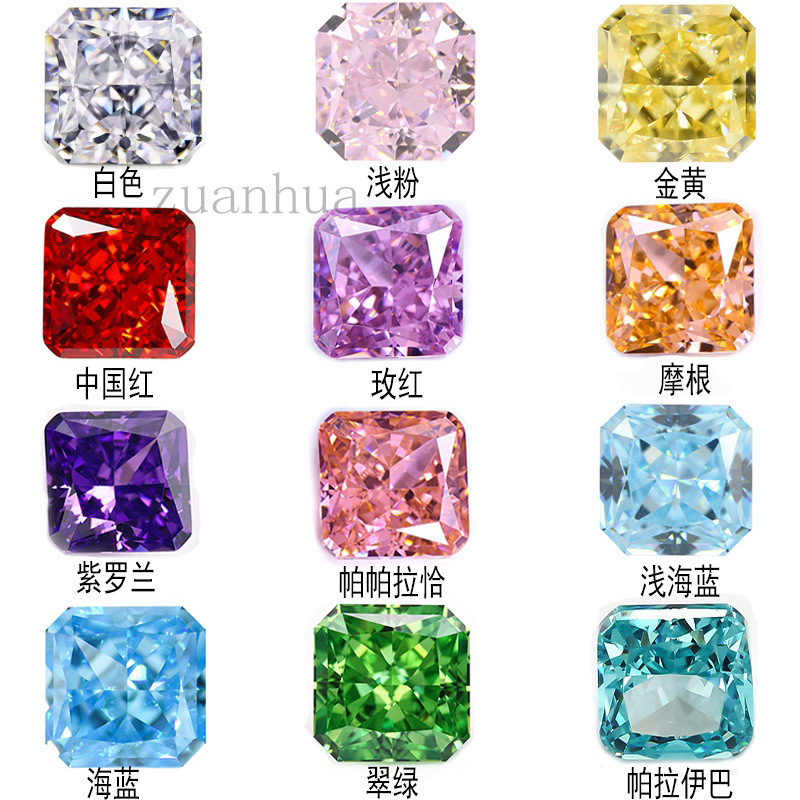 5A白色カラー正方形面取り氷花切ジルコン玉裸石砕氷宝石スポット卸売りジュエリー