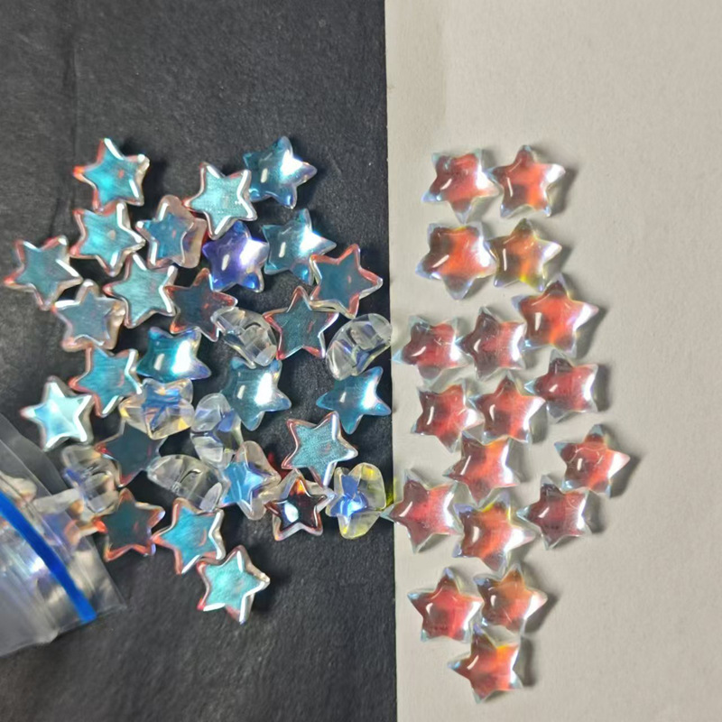 五角星AB彩彩月光石五角心平底素面AB極光ガラス石裸石現物卸売り
