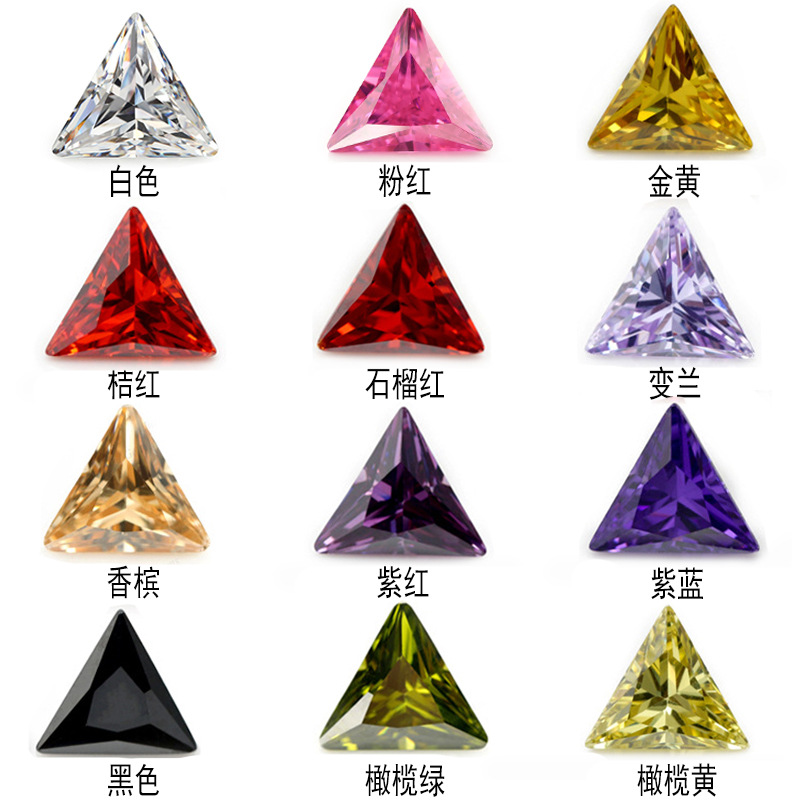 5A三角形白色カラージルコン裸石直三角合成czジルコニアdiy宝石スポット卸売り