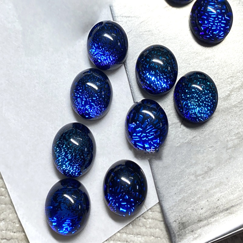 円形青色泊瑠璃裸石4-8mm平底素面瑠璃青色星空彩泊宝石卸売り