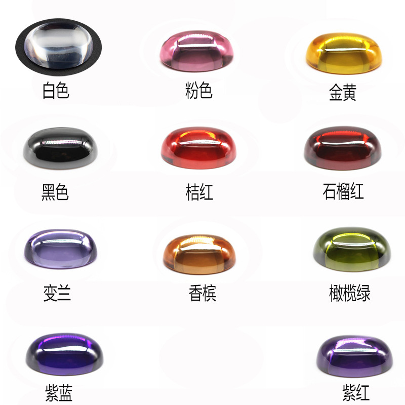 卵型平底プレーンホワイトカラージルコンルースストーン、卵型光沢オーバルCZストーン、卸売在庫宝石