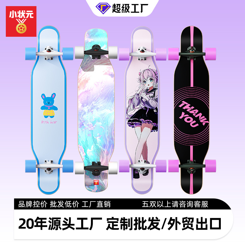ロングボードスケートボード女性小王子メーカー卸売大人ストリート四輪子供女の子初心者ロングボードダンスボード