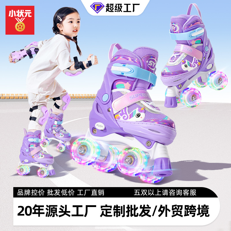 平花輪滑靴小チャンピオン児童初心者一体スタンドスケートローラースケート花式スケート靴工場卸売り