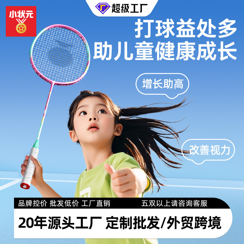 小チャンピオンのバドミントンラケットの子供の小学生の規格品の炭素の青少年の専門はダブルショットの初心者のスーツを打つことに耐えます。
