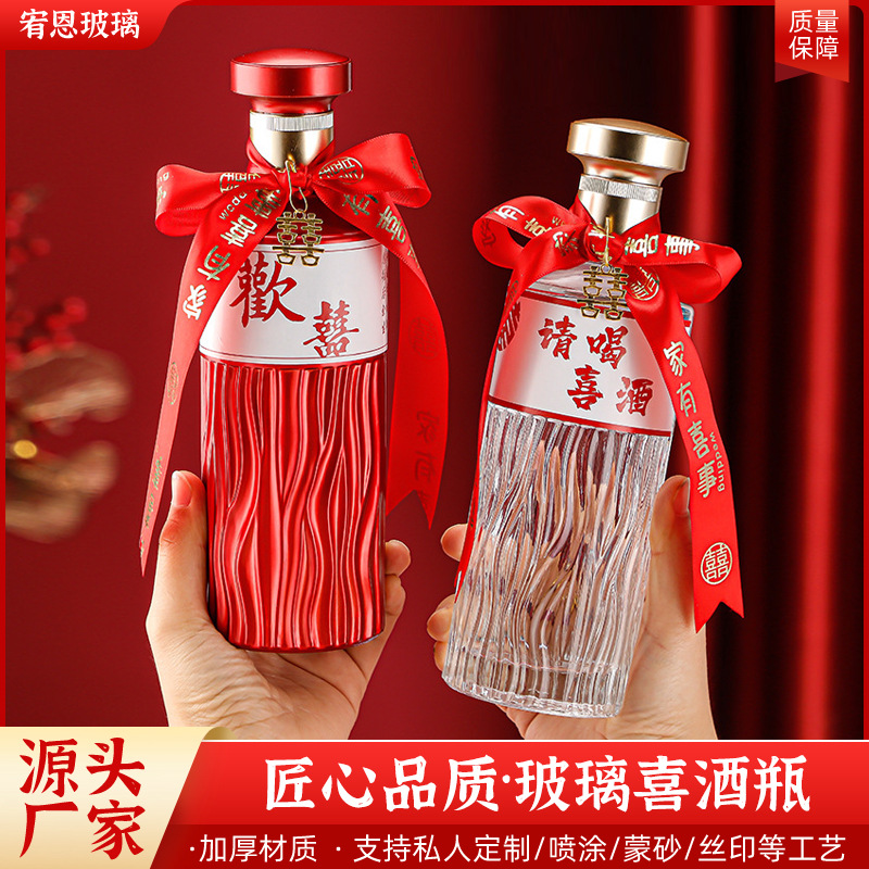 喜酒瓶ハイエンド披露宴瓶1斤入結婚酒瓶500mlハイエンドクリエイティブ喜酒瓶包装セット